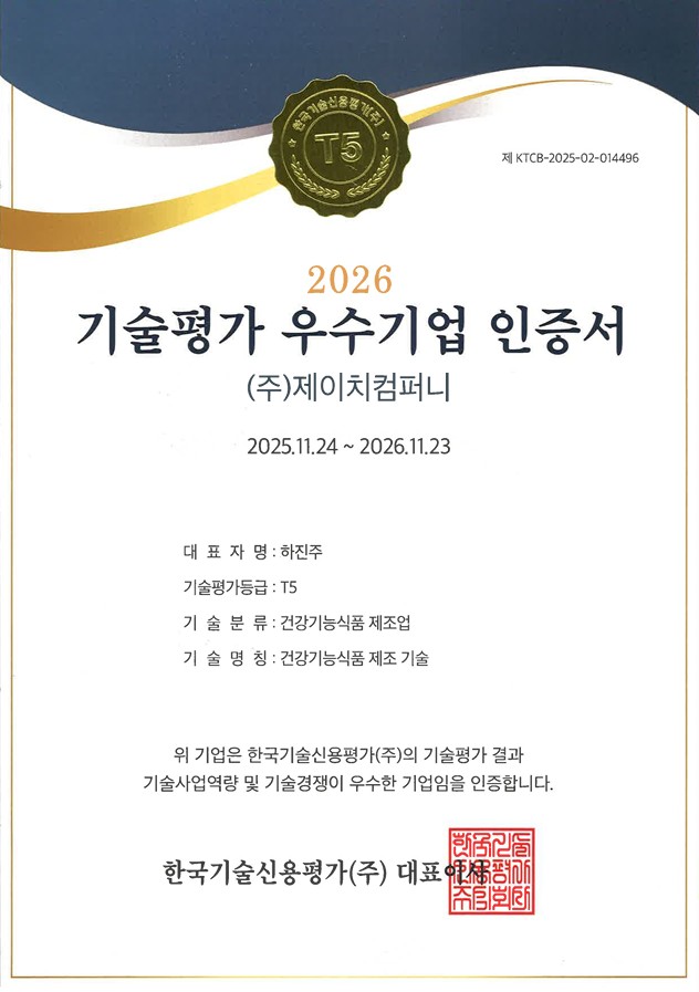 (ÁÖ)Á¦ÀÌÄ¡ÄÄÆÛ´Ï, Çѱ¹±â¼ú ½Å¿ëÆò°¡ ¡®°Ç°±â´É½Äǰ Á¦Á¶ ±â¼úÆò°¡ ¿ì¼ö±â¾÷¡¯ T5 µî±Þ ȹµæ
