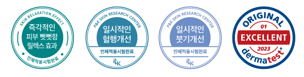 Certification | Immediate skin stiffness relaxation effect*, temporary swelling improvement*, temporary blood circulation improvement*, German derma test