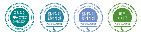 Certification | Immediate skin stiffness relaxation effect*, temporary swelling improvement*, temporary blood circulation improvement*, Skin Hypoallergenic*